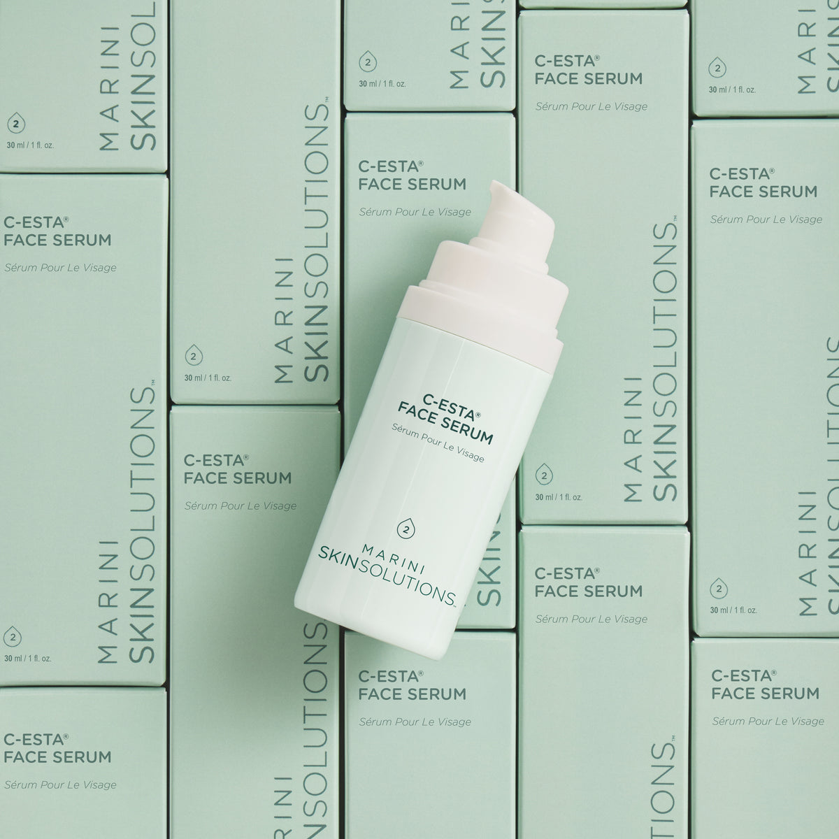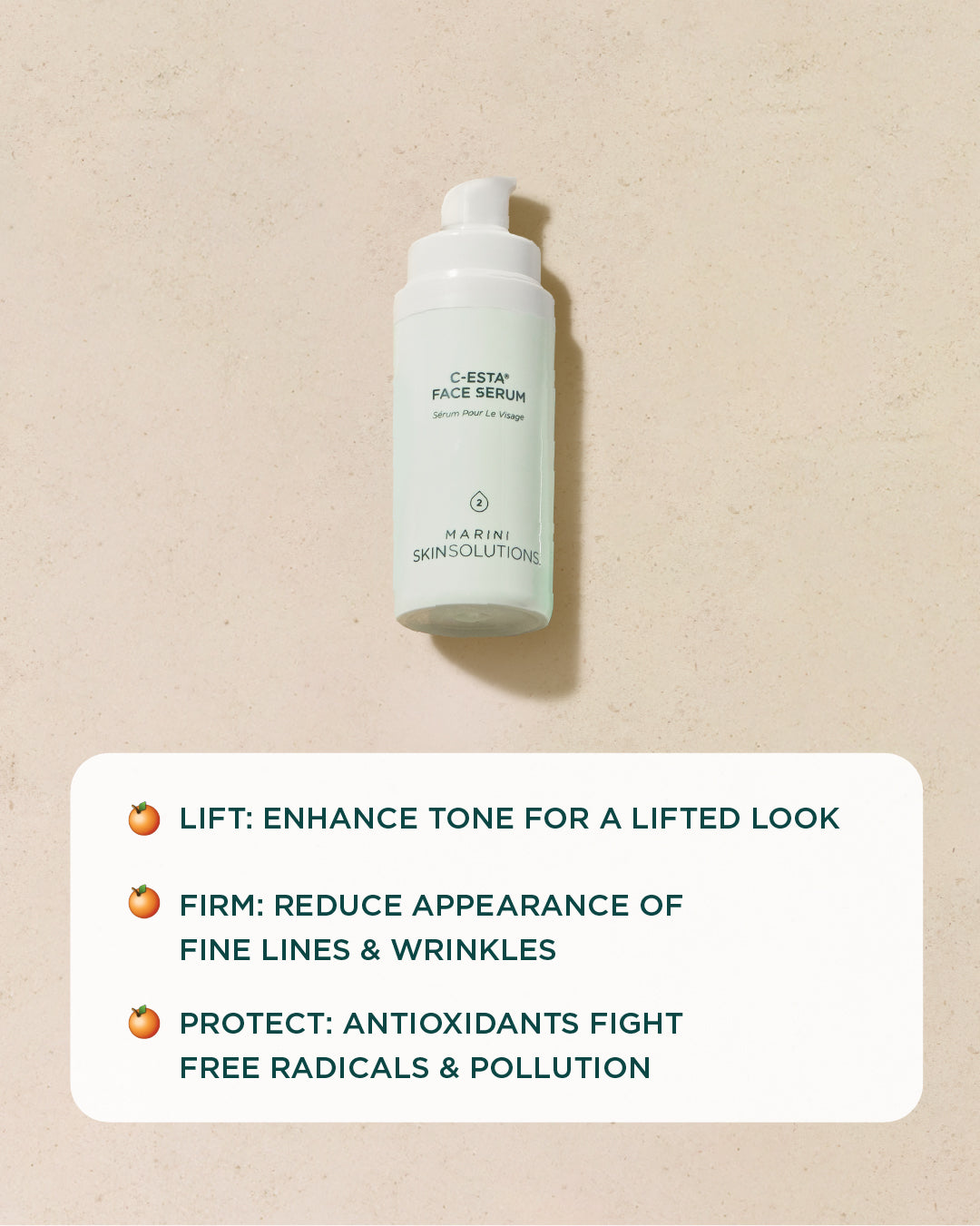 C-ESTA Face Serum is a powerful antioxidant cocktail, featuring a lipid-soluble form of Vitamin C, DMAE, and hyaluronic acid to help reduce the appearance of fine lines and wrinkles and uneven skin texture while simultaneously protecting the skin from free radicals caused by UV exposure and environmental stressors. In a split-face Vitamin C study published in the Journal of Drugs in Dermatology comparing C-ESTA to a leading vitamin C, our C-ESTA Face Serum was shown to reduce the appearance of fine lines and wrinkles while providing superior benefits to the leading traditional Vitamin C. C-ESTA Face Serum was also significantly preferred by study subjects over the leading traditional vitamin C. C-ESTA's lipid-soluble form of vitamin C enables this potent antioxidant to substantially assist the skin without the need for harsh acidity levels required by traditional forms of Vitamin C - meaning superior benefit with less irritation. DMAE enhances Vitamin C's benefits by helping to further reduce the appearance of fine lines and wrinkles giving facial contours a tighter, firmer, more "lifted" look. C-ESTA Face Serum is the preferred Vitamin C and antioxidant solution for younger, healthier-looking skin. Great for all skin types.