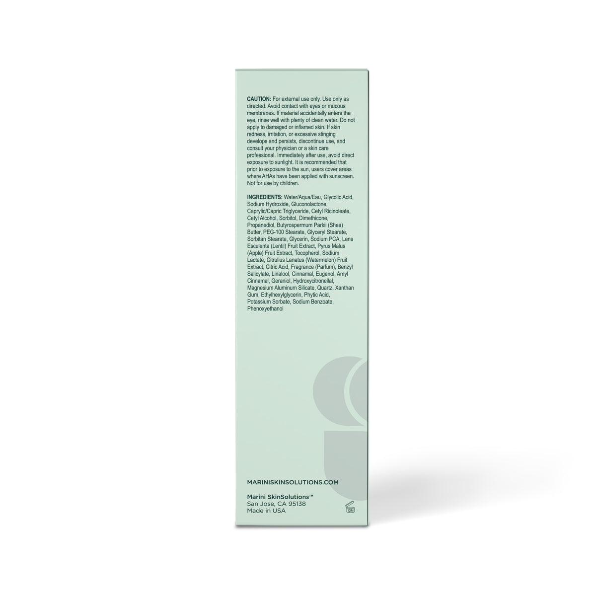 CAUTION: For external use only. Avoid contact with eyes or mucous membranes. If material accidentally enters the eye, rinse well with plenty of clean water. Do not apply to damaged or inflamed skin. If skin redness, irritation, or excessive stinging develops, discontinue use, and consult your physician or a skin care professional. Use in pregnancy is not recommended.